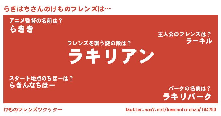 | 男性向けラノベタイトル風あだ名 | 『ノーゲーム・ノーラキハチ』 |