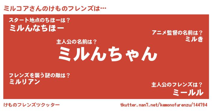 | ファンタジー風あだ名 | 『カークミルラー』『ミルフェル』 |