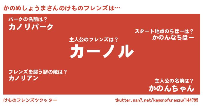 | ヘコむあだ名 | 『かのめしょうま(震え声)』『かのふぇ~』 |
