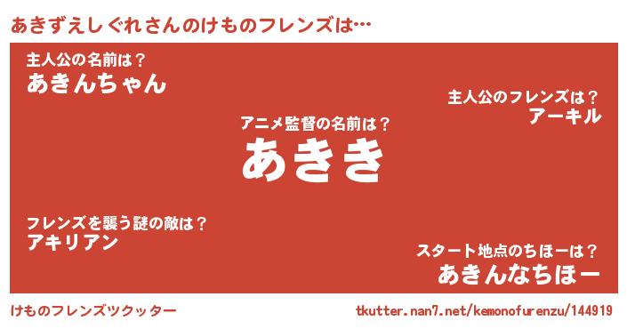 | 意味不明あだ名 | 『住所不定無職あきずえしぐれ(50歳)』 |
