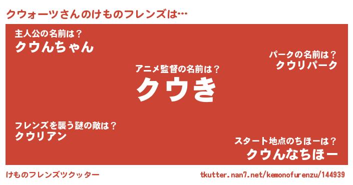 | ヘコむあだ名 | 『クウを』『クウにゅー』『酢こんぶ』 |