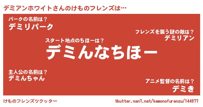 | 意味不明あだ名 | 『デミアンホワイトフォーエバー』 |