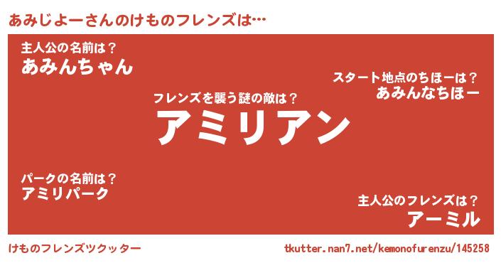| ヒーロー風カッコイイあだ名 | 『天空の使者あみじよー』『仮面アミダー』 |