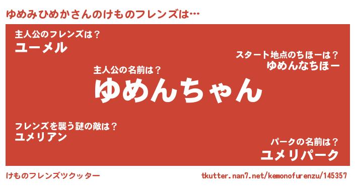 | ファンタジー風あだ名 | 『ユメフェル』『ユメディッシュ』 |