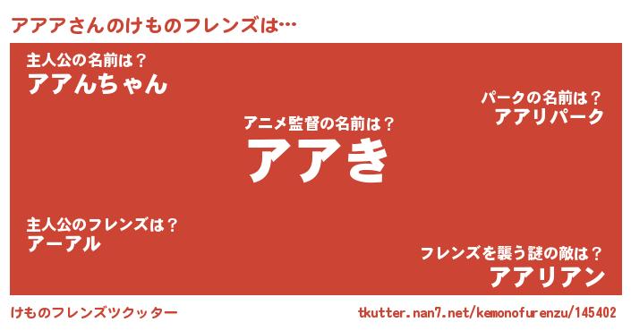 | 2回繰り返すあだ名 | 『いちゃいちゃ』『アアアア』 |