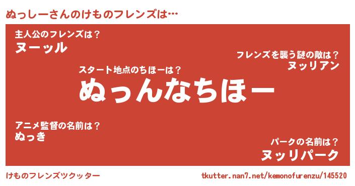| 2回繰り返すあだ名 | 『しゅーしゅー』『ぬぬっっ』 |