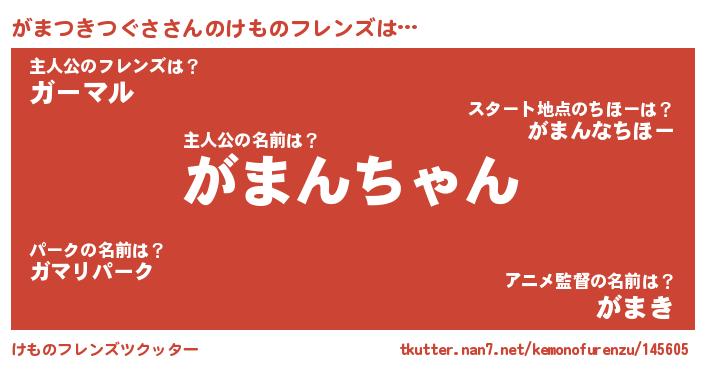 | 可愛いあだ名 | 『がんがん』『がまつきつぐさママ』 |