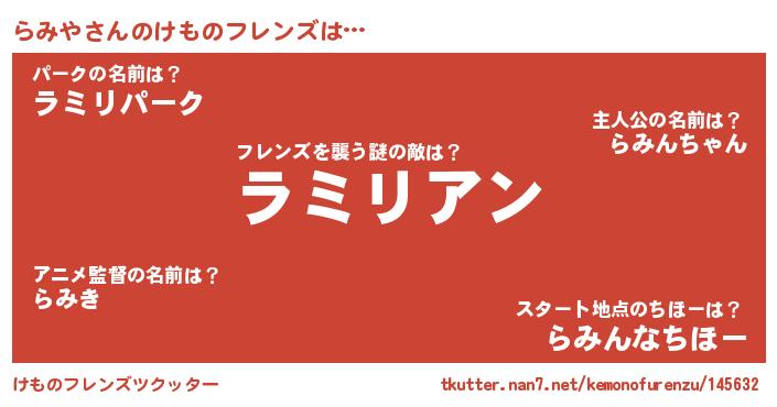 | 肩書あだ名 | 『らみや教授』『らみや艦長』 |