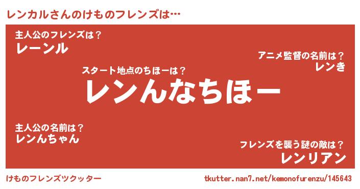 | 2回繰り返すあだ名 | 『レレンン』『ちろちろ』『がらがら』 |