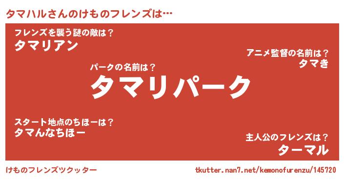 | 男性向けラノベタイトル風あだ名 | 『Re:タマハルから始める異世界生活』 |