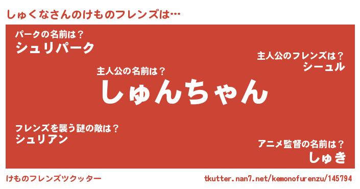 | ヒーロー風カッコイイあだ名 | 『仮面シュダー』『スーパーシュクナ』 |