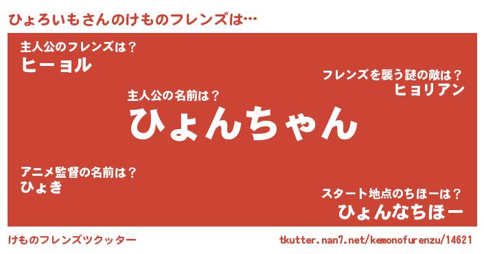 | 2回繰り返すあだ名 | 『ひょひょ』『つかつか』『ひひょょ』 |