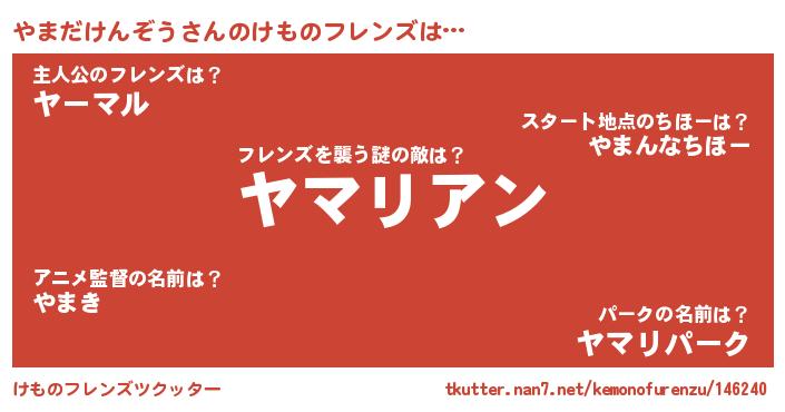 | 男性向けラノベタイトル風あだ名 | 『おまえをオタクにしてやるから、俺をやまだけんぞうにしてくれ! 』 |