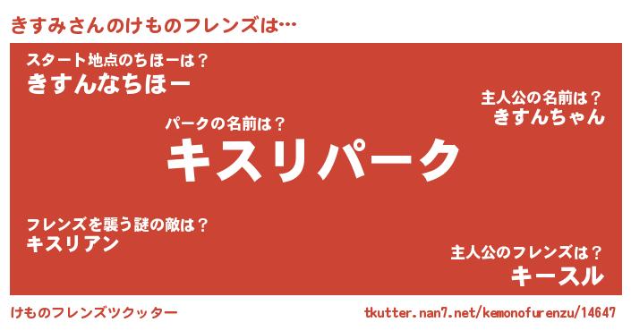 | 男性向けラノベタイトル風あだ名 | 『Re:きすみから始める異世界生活』 |