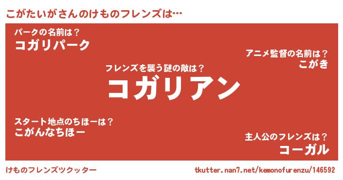 | ヒーロー風カッコイイあだ名 | 『仮面コガダー』『慈愛の使者こがたいが』 |