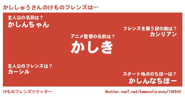 | ヒーロー風カッコイイあだ名 | 『暗黒騎士カシ』『スーパーカシシュウ』 |