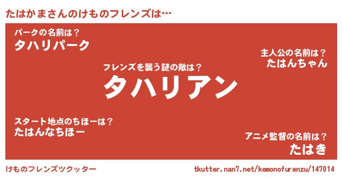 | ヒーロー風カッコイイあだ名 | 『天空の使者たはかま』『天弓騎士タハ』 |