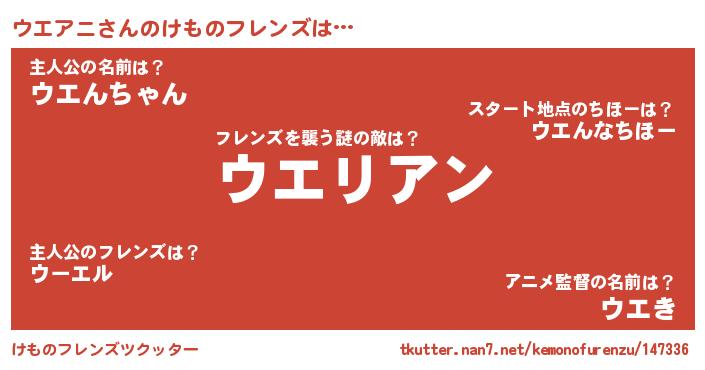 | 男性向けラノベタイトル風あだ名 | 『この素晴らしい世界にウエアニを!』 |