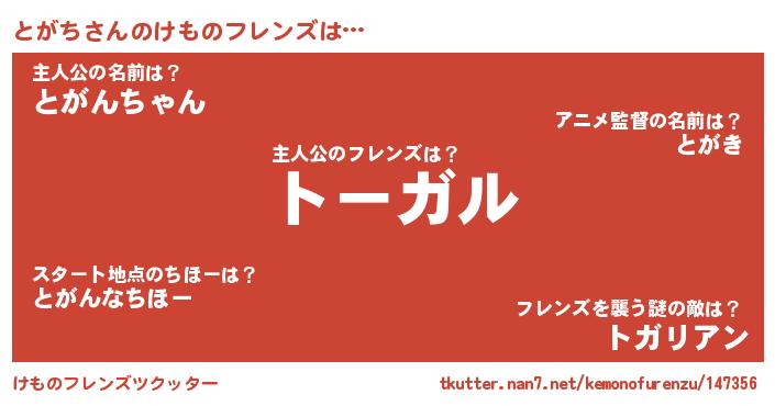 | ファンタジー風あだ名 | 『トガディッシュ』『トガフェル』 |