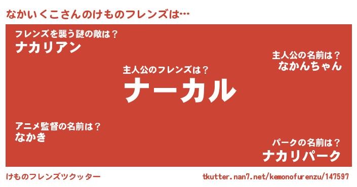 | ポケモン風あだ名 | 『ゼニナカ』『ナーカイ』 |