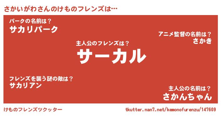 | 男性向けラノベタイトル風あだ名 | 『転生したらさかいがわだった件』 |
