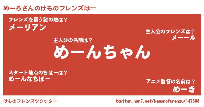 | 意味不明あだ名 | 『ペロリンめーろ』『永久保存めーろ』 |