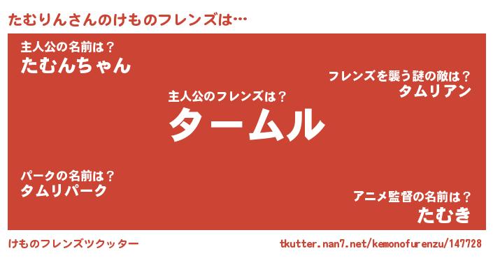 | 女子向けラノベタイトル風あだ名 | 『異世界で失敗しない100のたむりん』 |