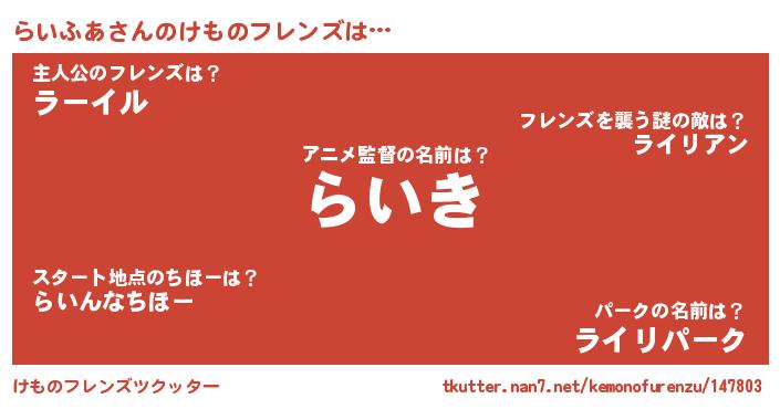 | ヘコむあだ名 | 『らい太郎』『らいふあ(遠い目)』 |
