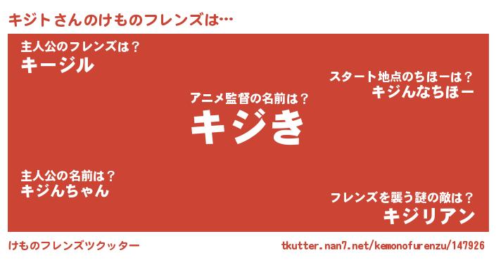 | ポケモン風あだ名 | 『ヒキジト』『ゼニキジ』『キジゴンZ』 |