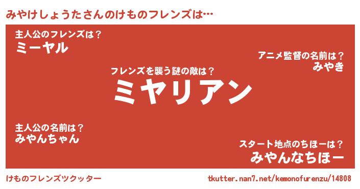 | ポケモン風あだ名 | 『ミヤキング』『ミックウザ』 |