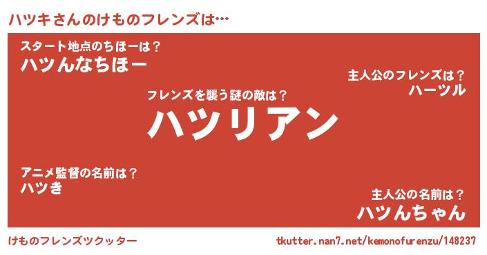 | ヒーロー風カッコイイあだ名 | 『正義の使者ハツキ』『仮面ハツダー』 |