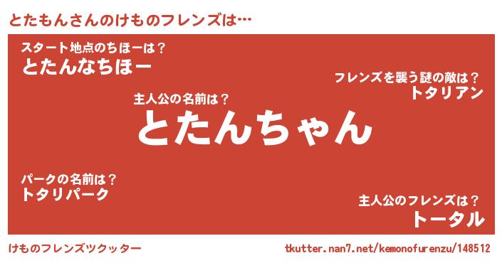 | 男性向けラノベタイトル風あだ名 | 『とたもんに滅ぼされるだけの簡単なお仕事です』 |