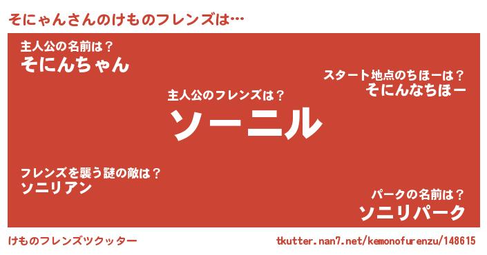| ポケモン風あだ名 | 『ソニキング』『ゼニソニ』 |