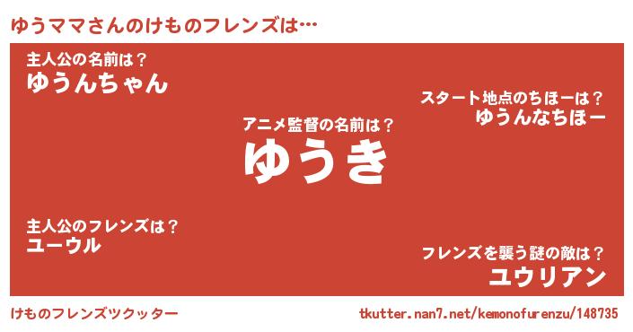 | ピコ太郎風あだ名 | 『ユウ六郎』『ユコ史郎』『ユユ太郎』 |