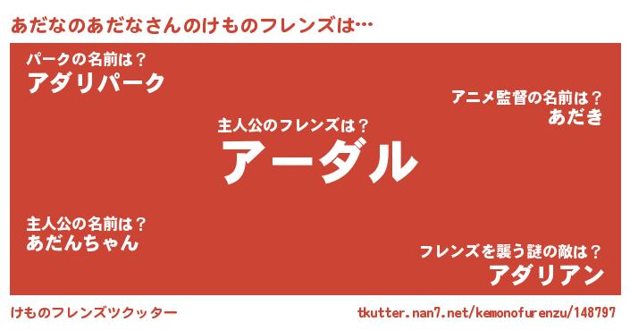 | ヒーロー風カッコイイあだ名 | 『ネオアダナノアダナ』『黄金騎士アダ』 |