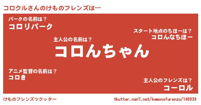 | 男性向けラノベタイトル風あだ名 | 『この素晴らしい世界にコロクルを!』 |
