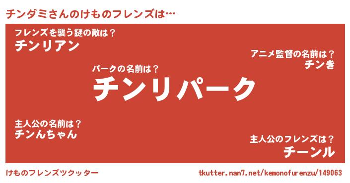 | 意味不明あだ名 | 『自称チンダミ』『永久保存チンダミ』 |