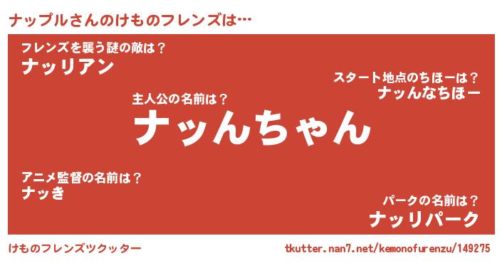 | 意味不明あだ名 | 『ペロリンナップル』『自称ナップル』 |