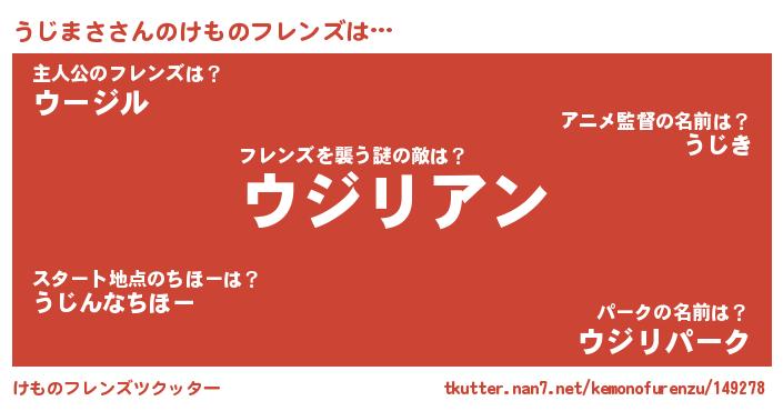 | 男性向けラノベタイトル風あだ名 | 『おまえをオタクにしてやるから、俺をうじまさにしてくれ! 』 |