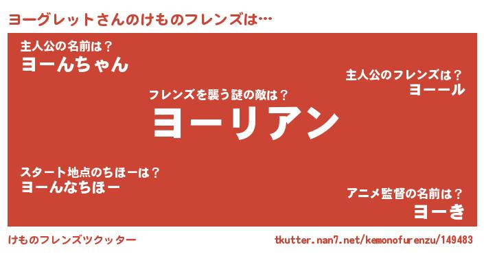 | 料理風あだ名 | 『ヨーグレットのカルパッチョ風』 |