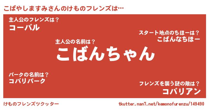 | ファンタジー風あだ名 | 『コバフェル』『コバディッシュ』 |