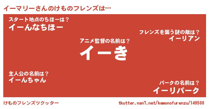 | 2回繰り返すあだ名 | 『ぬらぬら』『イイーー』『もぞもぞ』 |