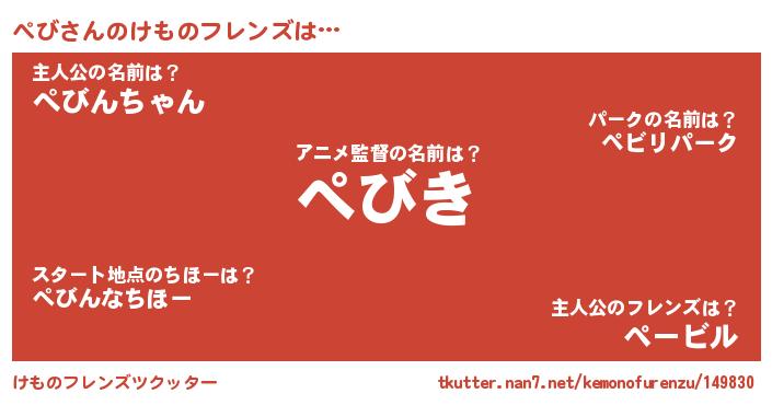 | 2回繰り返すあだ名 | 『あんあん』『ぺびぺび』『わなわな』 |