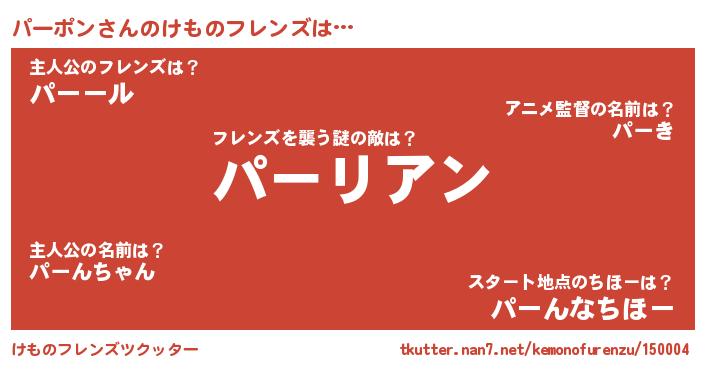 | 男性向けラノベタイトル風あだ名 | 『パーポンに滅ぼされるだけの簡単なお仕事です』 |