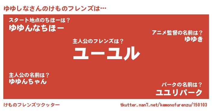 | ファンタジー風あだ名 | 『ユユディッシュ』『ゼユユトゥ』 |