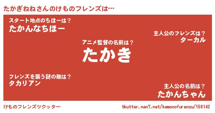 | ヒーロー風カッコイイあだ名 | 『魔戒騎士タカ』『スーパータカギネネ』 |