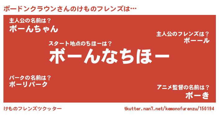 | 欧米人風あだ名 | 『ボードンクラウンクリステル』 |