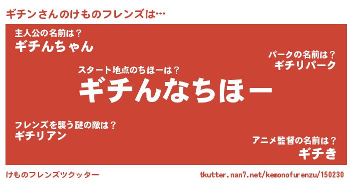| 2回繰り返すあだ名 | 『ギギチチ』『ギチギチ』『つんつん』 |