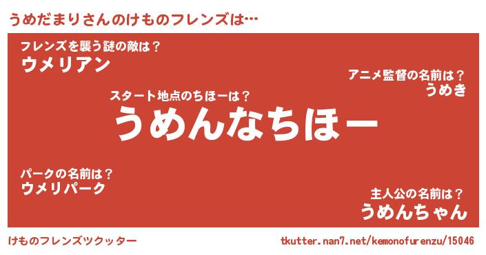 | 2回繰り返すあだ名 | 『ううめめ』『ぺらぺら』『うめうめ』 |