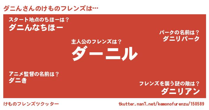 | 意味不明あだ名 | 『永久保存ダニん』『ダニんフォーエバー』 |